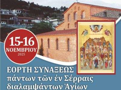 ΣΕΡΡΕΣΕορτή Συνάξεως Πάντων των εν Σέρραις Διαλαμψάντων ΑγίωνΕορτή Συνάξεως Πάντων των εν Σέρραις Διαλαμψάντων Αγίων Μετάβαση στην Πηγή SERRES POST Author: Φανή ...By ΕΙΔΗΣΕΙΣ 24712 Νοεμβρίου, 2025