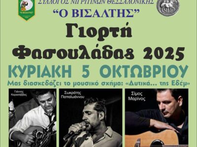 ΣΕΡΡΕΣΓιορτή Φασουλάδας 2025 από τον Σύλλογο Νιγριτινών ΘεσσαλονίκηςΓιορτή Φασουλάδας 2025 από τον Σύλλογο Νιγριτινών Θεσσαλονίκης Μετάβαση στην Πηγή SERRES POST Author: Φανή ...By ΕΙΔΗΣΕΙΣ 24730 Σεπτεμβρίου, 2025