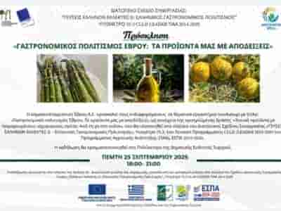 ΕΒΡΟΣΘεματικό εργαστήριο «Γαστρονομικός πολιτισμός Έβρου: τα προϊόντα μας με αποδείξεις» στο ΤυχερόΘεματικό εργαστήριο «Γαστρονομικός πολιτισμός Έβρου: τα προϊόντα μας με αποδείξεις» στο Τυχερό Μετάβαση στην Πηγή ...By ΕΙΔΗΣΕΙΣ 24725 Σεπτεμβρίου, 2025