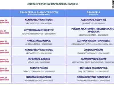 ΞΑΝΘΗΕφημερεύοντα Φαρμακεία της Ξάνθης από 20 έως 26 Οκτωβρίου 2025 Εφημερεύοντα Φαρμακεία της Ξάνθης από 20 έως 26 Οκτωβρίου 2025 Μετάβαση στην Πηγή ΞΑΝΘΗ POST ...By ΕΙΔΗΣΕΙΣ 24720 Οκτωβρίου, 2025