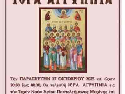 LIMNOSΛήμνος: Ιερά Αγρυπνία για τη μνήμη των Αγίων ΑναργύρωνΛήμνος: Ιερά Αγρυπνία για τη μνήμη των Αγίων Αναργύρων Μετάβαση στην Πηγή LIMNOS LIVE Author: ...By ΕΙΔΗΣΕΙΣ 24715 Οκτωβρίου, 2025