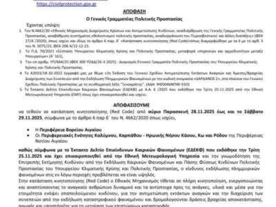 LIMNOS«RED CODE» για Βόρειο Αιγαίο και Δωδεκάνησα«RED CODE» για Βόρειο Αιγαίο και Δωδεκάνησα Μετάβαση στην Πηγή LIMNOS LIVE Author: Limnos LiveBy ΕΙΔΗΣΕΙΣ 24727 Νοεμβρίου, 2025