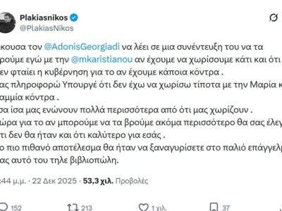 LIMNOSΠλακιάς σε Άδωνι: «Αν τα βρούμε με την Καρυστιανού, θα γίνεις ξανά τηλεβιβλιοπώλης»Πλακιάς σε Άδωνι: «Αν τα βρούμε με την Καρυστιανού, θα γίνεις ξανά τηλεβιβλιοπώλης» Μετάβαση στην ...By ΕΙΔΗΣΕΙΣ 24723 Δεκεμβρίου, 2025