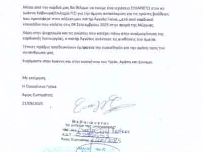 LIMNOSΛήμνος: Το Ευχαριστώ που ραγίζει καρδιές – Η οικογένεια του πατρός Άγγελου στον Ιωάννη ΚάβουραΛήμνος: Το Ευχαριστώ που ραγίζει καρδιές – Η οικογένεια του πατρός Άγγελου στον Ιωάννη Κάβουρα ...By ΕΙΔΗΣΕΙΣ 2471 Οκτωβρίου, 2025