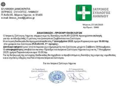 LIMNOSΜερική εκλογική διαδικασία στον Ιατρικό Σύλλογο ΛήμνουΜερική εκλογική διαδικασία στον Ιατρικό Σύλλογο Λήμνου Μετάβαση στην Πηγή LIMNOS LIVE Author: Limnos LiveBy ΕΙΔΗΣΕΙΣ 24730 Οκτωβρίου, 2025