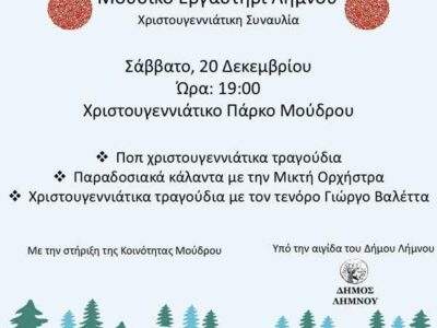 LIMNOSXmas concert στο Μούδρο με τραγούδια και κάλαντα από όλο τον κόσμο!Xmas concert στο Μούδρο με τραγούδια και κάλαντα από όλο τον κόσμο! Μετάβαση στην Πηγή ...By ΕΙΔΗΣΕΙΣ 24717 Δεκεμβρίου, 2025