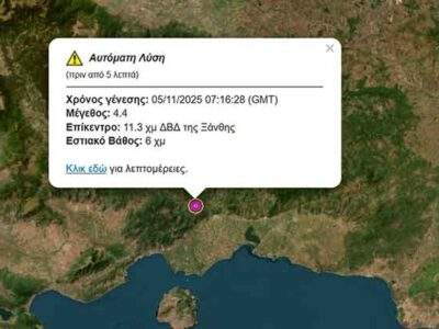 ΞΑΝΘΗΙσχυρός σεισμός πριν λίγο στην Ξάνθη – Επίκεντρο 11,3 χλμ βορειοδυτικά της πόλης με εστιακό βάθος 6χλμ.Ισχυρός σεισμός πριν λίγο στην Ξάνθη – Επίκεντρο 11,3 χλμ βορειοδυτικά της πόλης με εστιακό ...By ΕΙΔΗΣΕΙΣ 2475 Νοεμβρίου, 2025