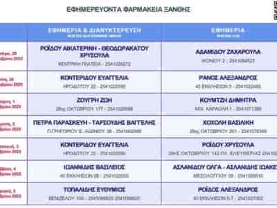 ΞΑΝΘΗΕφημερεύοντα Φαρμακεία της Ξάνθης από 29 Σεπτεμβρίου έως 5 Οκτωβρίου 2025 Εφημερεύοντα Φαρμακεία της Ξάνθης από 29 Σεπτεμβρίου έως 5 Οκτωβρίου 2025 Μετάβαση στην Πηγή ΞΑΝΘΗ ...By ΕΙΔΗΣΕΙΣ 2471 Οκτωβρίου, 2025