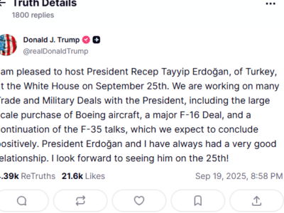 ΚΟΙΝΩΝΙΑ«Κανόνας οι συναντήσεις μεταξύ ηγετών του ΝΑΤΟ»: Τι αναφέρουν διπλωματικές πηγές για τη συνάντηση Τραμπ – Ερντογάν και τα F-35«Κανόνας οι συναντήσεις μεταξύ ηγετών του ΝΑΤΟ»: Τι αναφέρουν διπλωματικές πηγές για τη συνάντηση Τραμπ ...By ΕΙΔΗΣΕΙΣ 24720 Σεπτεμβρίου, 2025