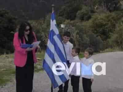 Δύο μαθητές δημοτικού παρέλασαν για την 28η Οκτωβρίου σε χωριό της Καρύστου – «Τα αγαπώ πολύ» είπε η δασκάλα τους