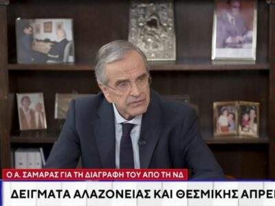 “Μύδροι” Σαμαρά κατά Μητσοτάκη: “Έχει μετατρέψει τη Νέα Δημοκρατία σε υβρίδιο Σημιτικού ΠΑΣΟΚ με μπλε χρώμα – Με διέγραψε άρον άρον” (Βίντεο)