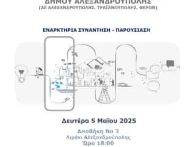 ΡΟΗ ΕΙΔΗΣΕΩΝΠαρουσιάζεται η μελέτη για το Τοπικό Πολεοδομικό Σχέδιο του Δήμου ΑλεξανδρούποληςΤην Τρίτη 30 Απριλίου 2025, ο Δήμος Αλεξανδρούπολης διοργανώνει ενημερωτική εκδήλωση για την παρουσίαση της ...By ΕΙΔΗΣΕΙΣ 24725 Απριλίου, 2025