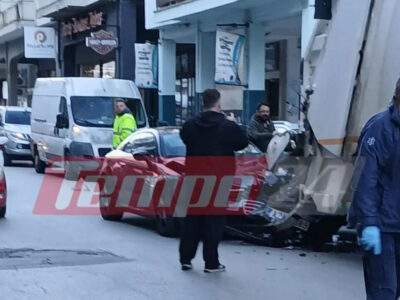 Πάτρα: Όχημα συγκρούστηκε με απορριμματοφόρο, τραυματίζοντας υπάλληλο καθαριότητας