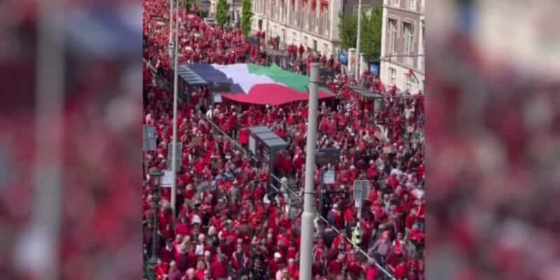 Χάγη: Πάνω από 100.000 διαδηλωτές ντυμένοι στα κόκκινα διαμαρτυρήθηκαν για τον πόλεμο στη Γάζα