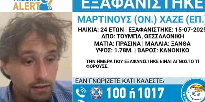 Χαμόγελο του Παιδιού: Ανησυχία για την εξαφάνιση 24χρονου Ολλανδού από την Θεσσαλονίκη