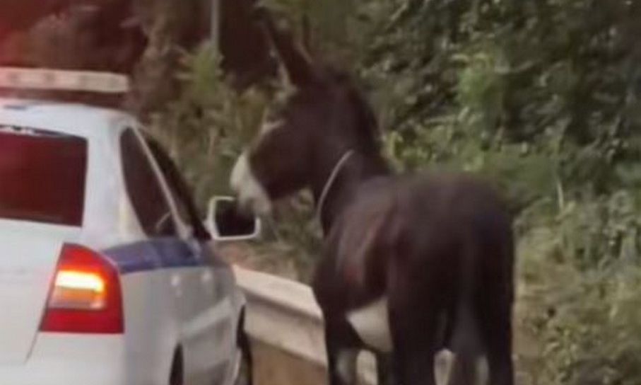 Χανιά: Αστυνομικοί «συνέλαβαν» γάιδαρο που έκανε βόλτες στην Εθνική – Δείτε βίντεο