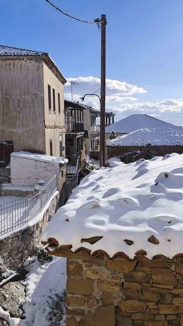 Χιονισμένος Κορνός, το χωριό της Λήμνου σαν καρτ ποστάλ! (εικόνες -βίντεο)