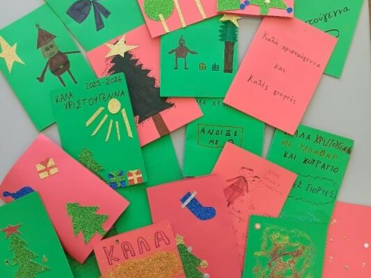 Χριστουγεννιάτικες κάρτες σε ογκολογικούς ασθενείς από τους μαθητές του Γυμνασίου με Λυκειακές Τάξεις Μεταξάδων