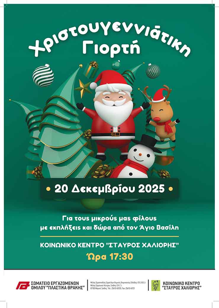 Χριστουγεννιάτικη γιορτή του Σωματείου Εργαζομένων Πλαστικά Θράκης στο Κέντρο «Σταύρος Χαλιορής»