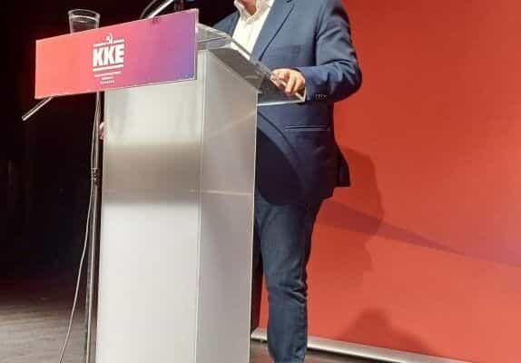 Η ομιλία του γ.γ. του ΚΚΕ Δημήτρη Κουτσούμπα πραγματοποιήθηκε στο Δημοτικό Ωδείο Λάρισας με θέμα «Καμία θυσία για τους πολέμους, τους δασμούς και τις κρίσεις του κεφαλαίου. Η πάλη για τον σοσιαλισμό η μόνη διέξοδος υπέρ του λαού».