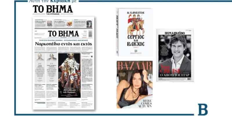 Το ρευστό πολιτικό σκηνικό, οι γεωπολιτικές αναταράξεις – Μαζί με το Βήμα ο πρώτος τόμος τoυ βιβλίου «Σέργιος και Βάκχος», το περιοδικό Harper’s Bazaar και όπως κάθε Κυριακή το ΒΗΜΑGAZINO.
