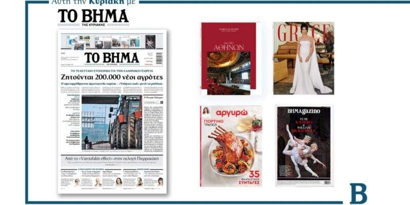 Το τελευταίο στοίχημα για την ελληνική γεωργία – Μαζί με το Βήμα της Κυριακής: Οι Μεγάλες Σκηνές με αφιέρωμα στο Θέατρο Αθηνών, το εορταστικό τεύχος GRACE, η Αργυρώ με 35 φανταστικές συνταγές για το γιορτινό τραπέζι, και ΒΗΜΑGAZINO.