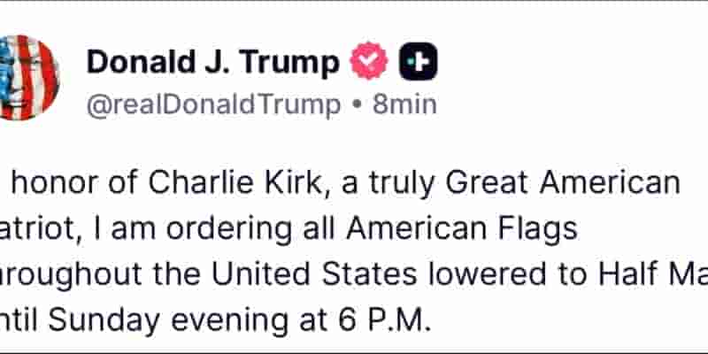 Δολοφονία Τσάρλι Κερκ: Ο Τραμπ διατάσσει οι σημαίες να κυματίζουν μεσίστιες