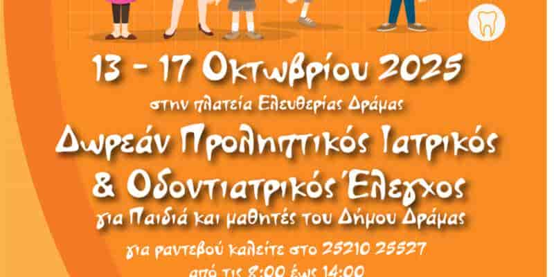 Δωρεάν Προληπτικοί Ιατρικοί και Οδοντιατρικοί έλεγχοι στον Δήμο Δράμας από τον Οργανισμό «Το Χαμόγελο του Παιδιού»