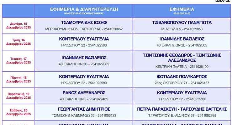 Εφημερεύοντα Φαρμακεία της Ξάνθης από 15 έως 21 Δεκεμβρίου 2025