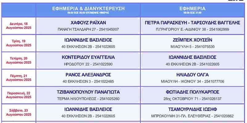 Εφημερεύοντα Φαρμακεία της Ξάνθης από 18 έως 24 Αυγούστου 2025