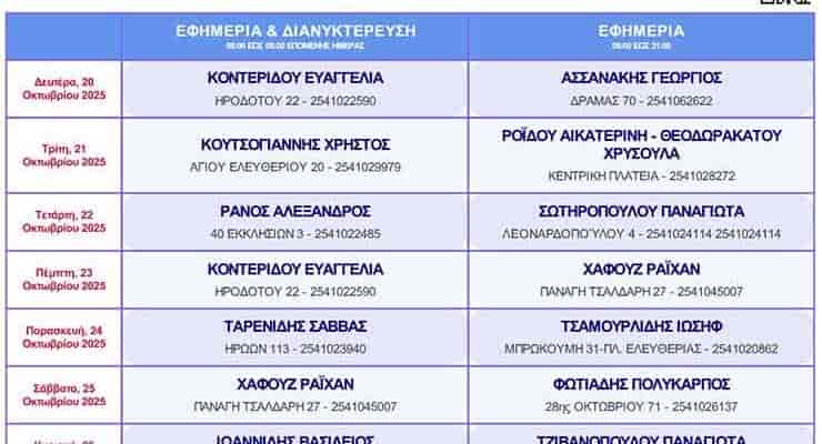 Εφημερεύοντα Φαρμακεία της Ξάνθης από 20 έως 26 Οκτωβρίου 2025