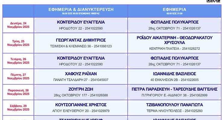 Εφημερεύοντα Φαρμακεία της Ξάνθης από 24 έως 30 Νοεμβρίου 2025