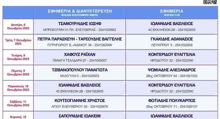 Εφημερεύοντα Φαρμακεία της Ξάνθης από 6 έως 12 Οκτωβρίου 2025