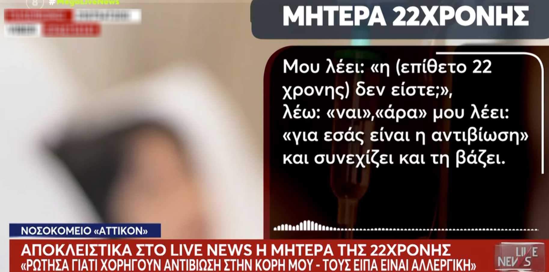 «Είναι αλλεργικό το παιδί είπα στη νοσηλεύτρια», περιγράφει η μητέρα της 22χρονης που υπέστη αλλεργικό σοκ λόγω λάθος φαρμάκου