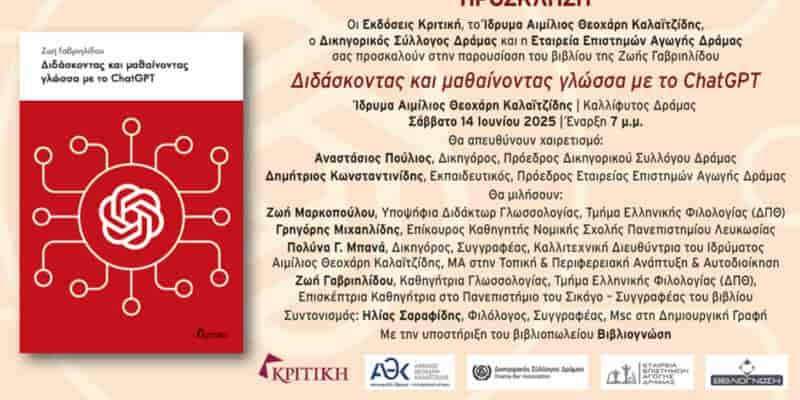 Εκδήλωση για την Τεχνητή Νοημοσύνη στο Κοινωφελές Ίδρυμα-Πνευματικό Κέντρο «ΑΙΜΙΛΙΟΣ ΘΕΟΧΑΡΗ ΚΑΛΑΪΤΖΙΔΗΣ»
