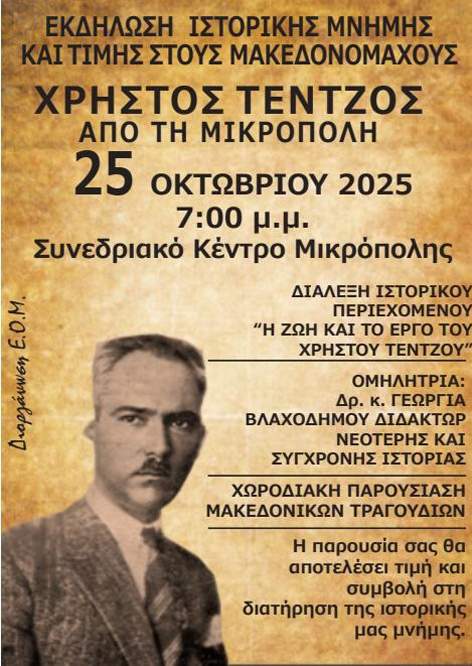 Εκδήλωση για τον αγωνιστή Χρήστο Τέντζο στη Μικρόπολη