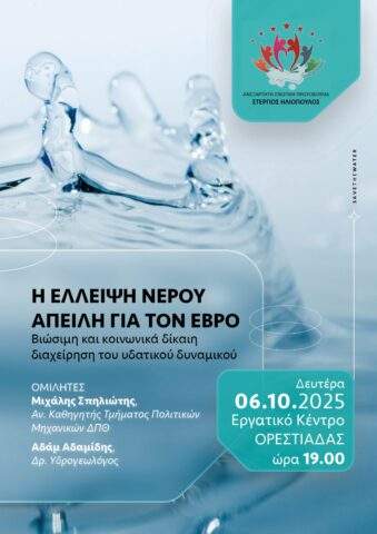 Εκδήλωση στην Ορεστιάδα με θέμα: “Η έλλειψη νερού απειλή για τον Έβρο”