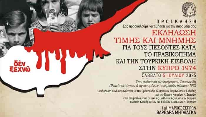 Ο Δήμος Σερρών, σε συνεργασία με την Ομοσπονδία Κυπριακών Οργανώσεων Ελλάδος και την Ένωση Κυπρίων Ν.