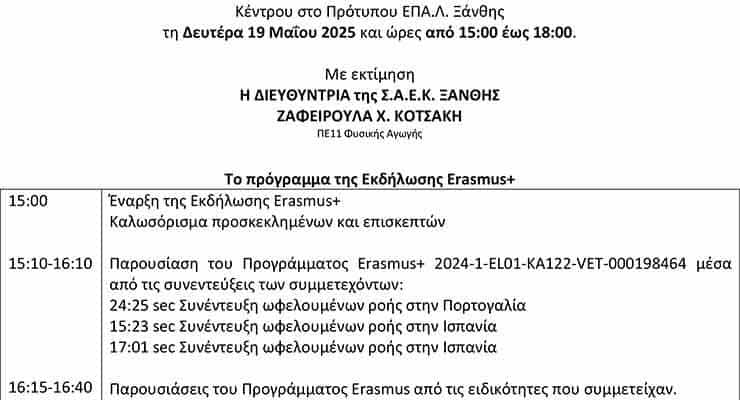 Εκδήλωση της ΣΑΕΚ Ξάνθης για το Erasmus+: Παρουσίαση του προγράμματος κατάρτισης 2024-2025