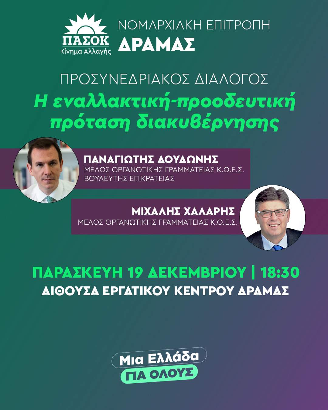 Εκδήλωση του ΠΑΣΟΚ στη Δράμα με ομιλητές τον Π. Δουδωνή και τον Μ. Χάλαρη