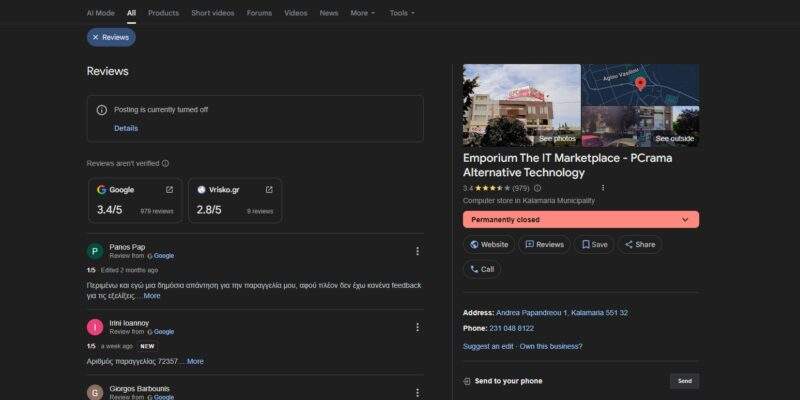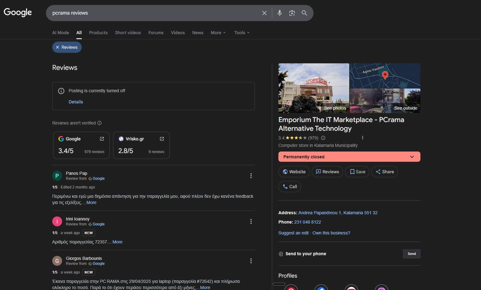 Όπως μας ενημερώνουν αναγνώστες στην επίσημη ιστοσελίδα μας στο Facebook, και όπως διαπιστώσαμε κι εμείς οι ίδιοι με μια απλή επίσκεψη στη Google, το PC RAMA κατέβασε επισήμως ρολά. Εντύπωση μας προκάλεσε το γεγονός ότι, λόγω των πολλών αξιολογήσεων που προσπαθούν να αφήσουν δυσαρεστημένοι πελάτες, οι οποίοι αγωνιούν για την παραγγελία τους, ή τα χρήματά […]
