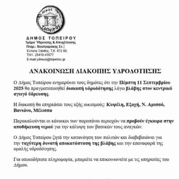 Έκτακτα μέτρα για την εξοικονόμηση πόσιμου νερού στον Δήμο Αβδήρων – Απαγορεύσεις και πρόστιμα εν μέσω ξηρασίας