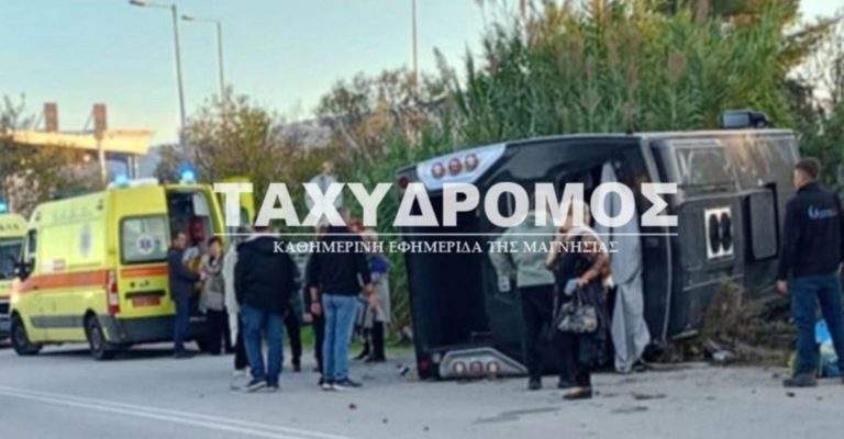 Εκτροπή λεωφορείου με 40 επιβάτες έξω από τον Ριζόμυλο του Βόλου – Στο νοσοκομείο 14 τραυματίες