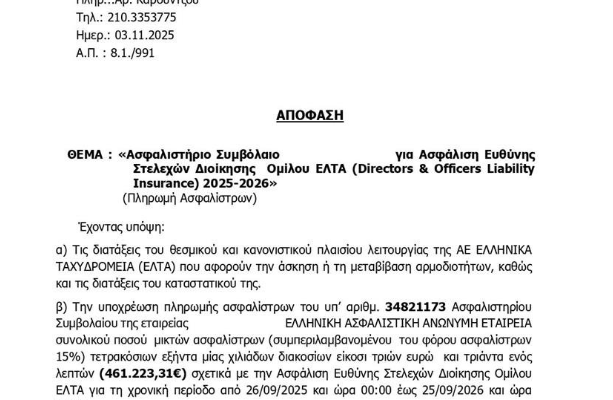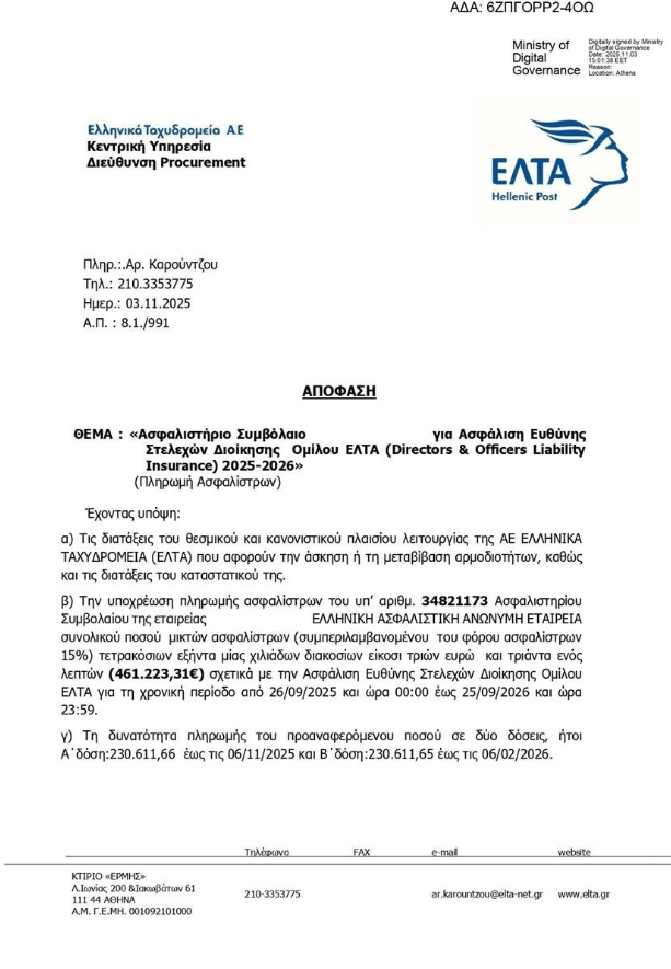 ΕΛΤΑ / Μια μέρα πριν παραιτηθεί από τα ΕΛΤΑ ο Σκλήκας ασφαλίστηκε για 461.000 ευρώ (Δείτε το έγγραφο)