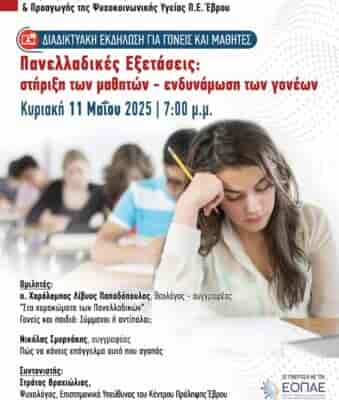 Ενημέρωση για διαδικτυακή εκδήλωση υποστήριξης μαθητών και γονέων ενόψει Πανελλαδικών Εξετάσεων