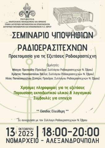 Ενημερωτικό σεμινάριο για υποψήφιους ραδιοερασιτέχνες στην Π.Ε. Έβρου