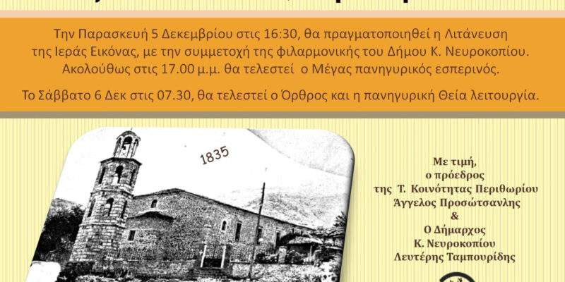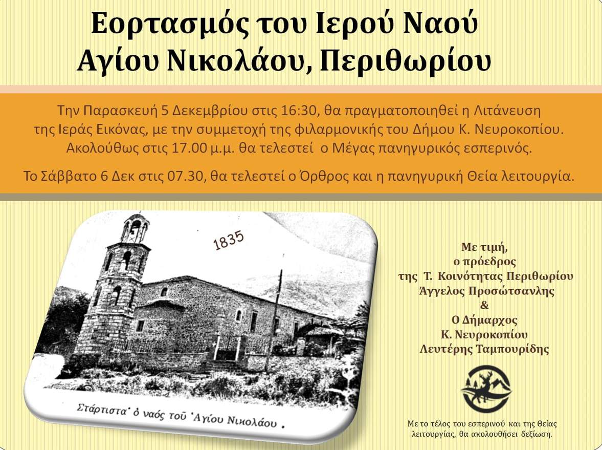 Εορτασμός Ιερού Ναού Αγίου Νικολάου στο Περιθώρι