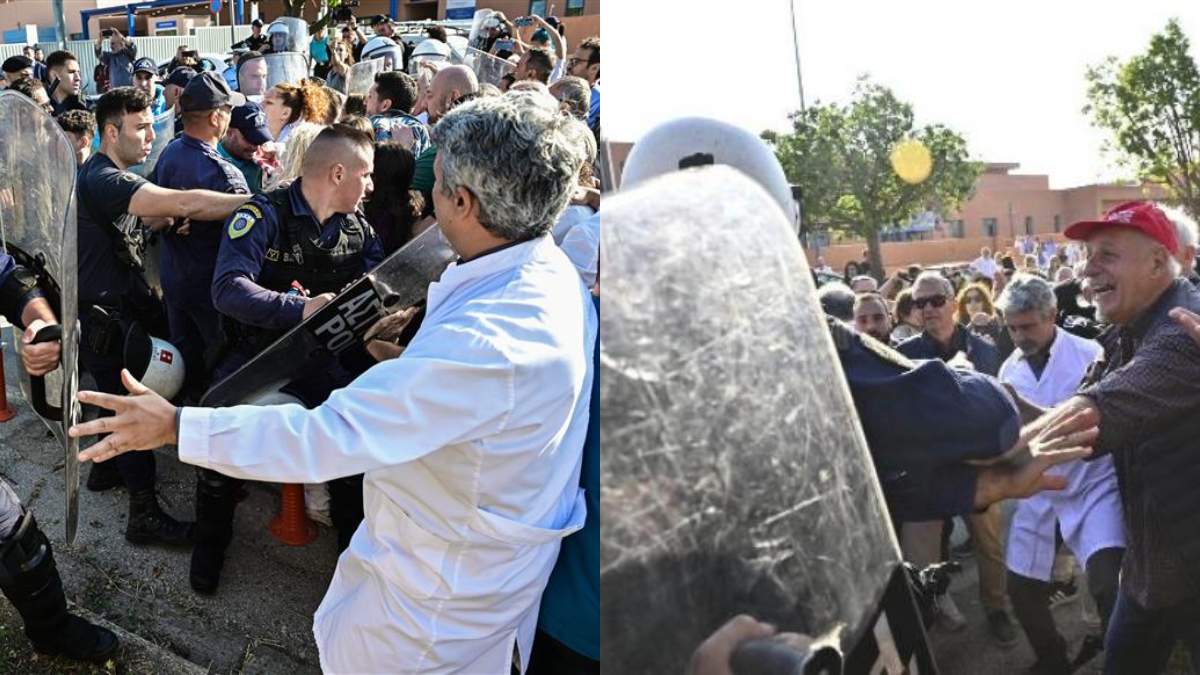 Επεισόδια και ρίψη χημικών στο νοσοκομείο «Αττικόν» κατά την επίσκεψη Μητσοτάκη-Άδωνι