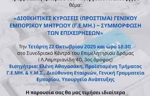 Επιμελητήριο Δράμας: Ενημερωτική εκδήλωση για το ΓΕ.Μ.Η.