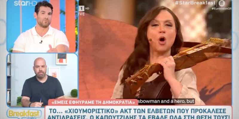 Το χιουμοριστικό act των Ελβετών στον χθεσινό Α’ Ημιτελικό της Eurovision 2025 σχολίασε ο Ετεοκλής Παύλου σήμερα 14/5.